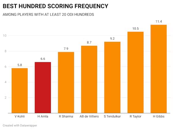 Such was his brilliance that fans and experts were comparing him with Virat Kohli, an ODI batting giant in modern-day cricket. Amla broke Kohli’s record for being the fastest to score 6,000 and 7,000 ODI runs. Before that, he already was the fastest to 2,000, 3,000, 4,000 and 5,000 runs. In terms of scoring hundreds, he is second only to Kohli amongst the 14 batsmen who have scored 20 ODI hundreds or more.