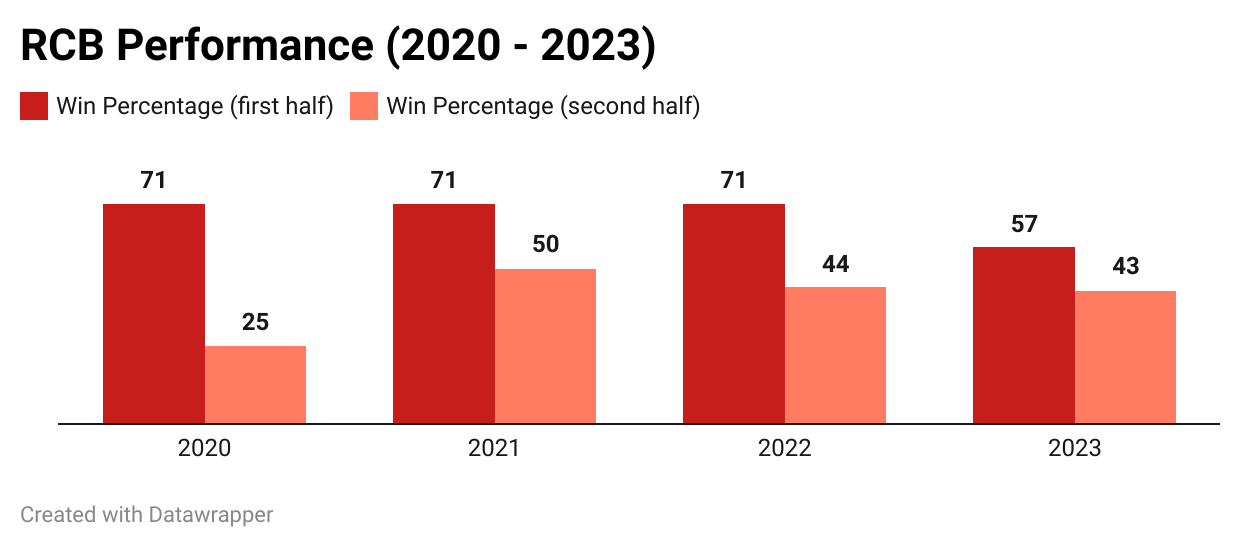 Another key feature of Hesson management had been the consistency in squad selection - a concept that was lost on RCB fans. Having seen too many changes and an emphasis on results over processes, it was a welcome change in plans for the then Virat Kohli-led franchise.
