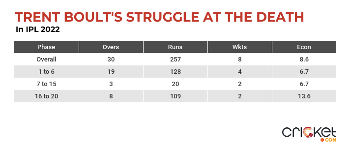 While, the Royals boast of a formidable bowling unit comprising some world-class bowlers, one of the glaring issues for the team management would be the form of Trent Boult.