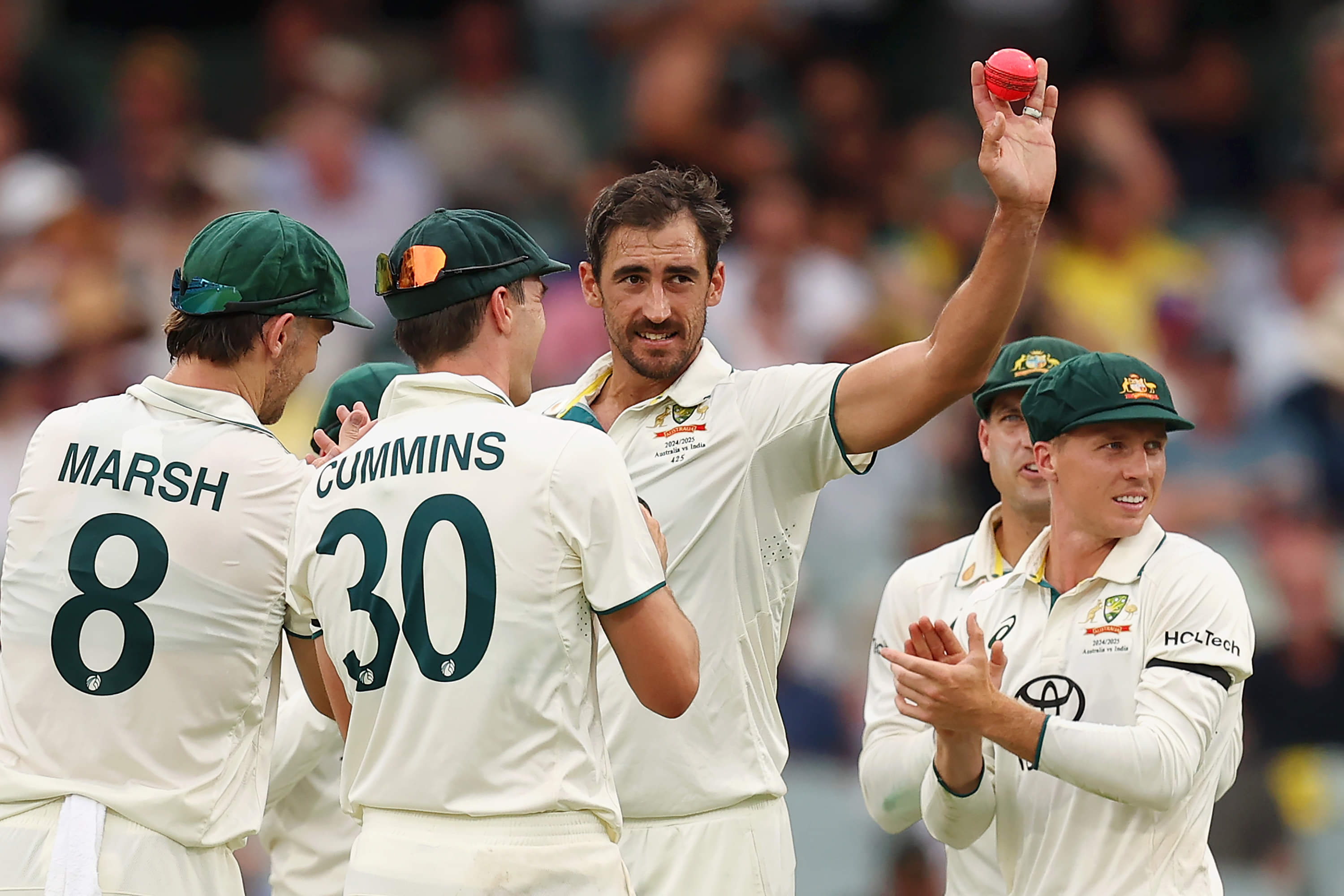 Rana’s wicket made it five for Starc, his fourth with the pink ball. No other bowler in history has more than two.