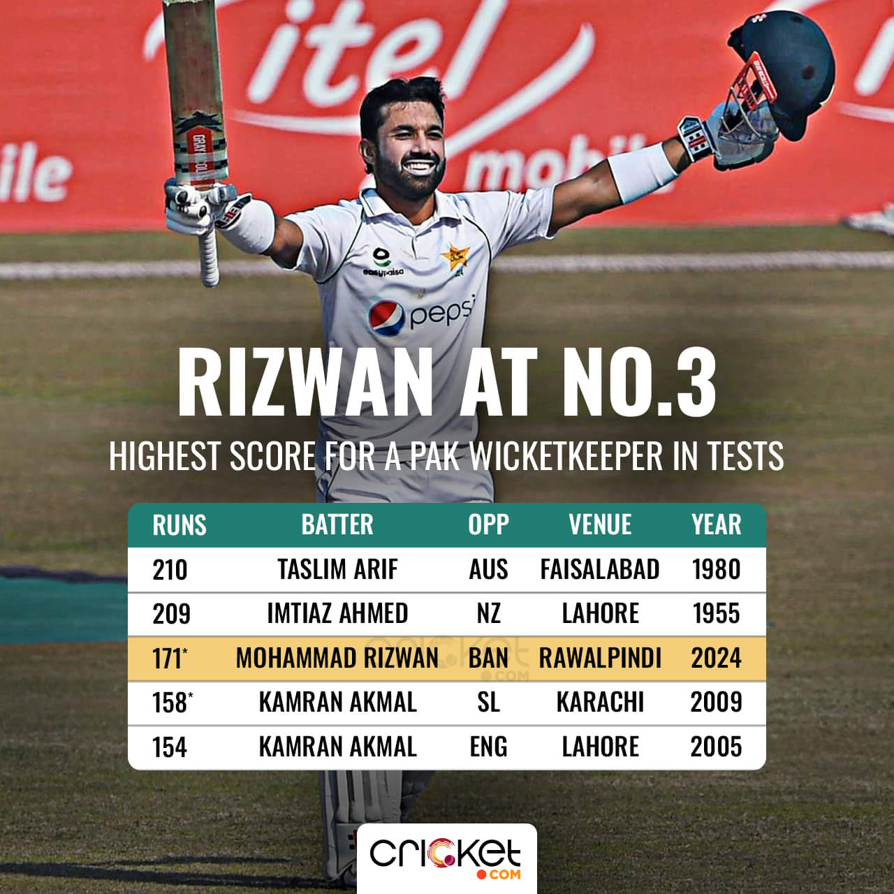 On the back of this knock, Rizwan became the fifth Pakistani wicketkeeper to score a Test 150, joining the likes of Rashid Latif and Kamran Akmal, among others.