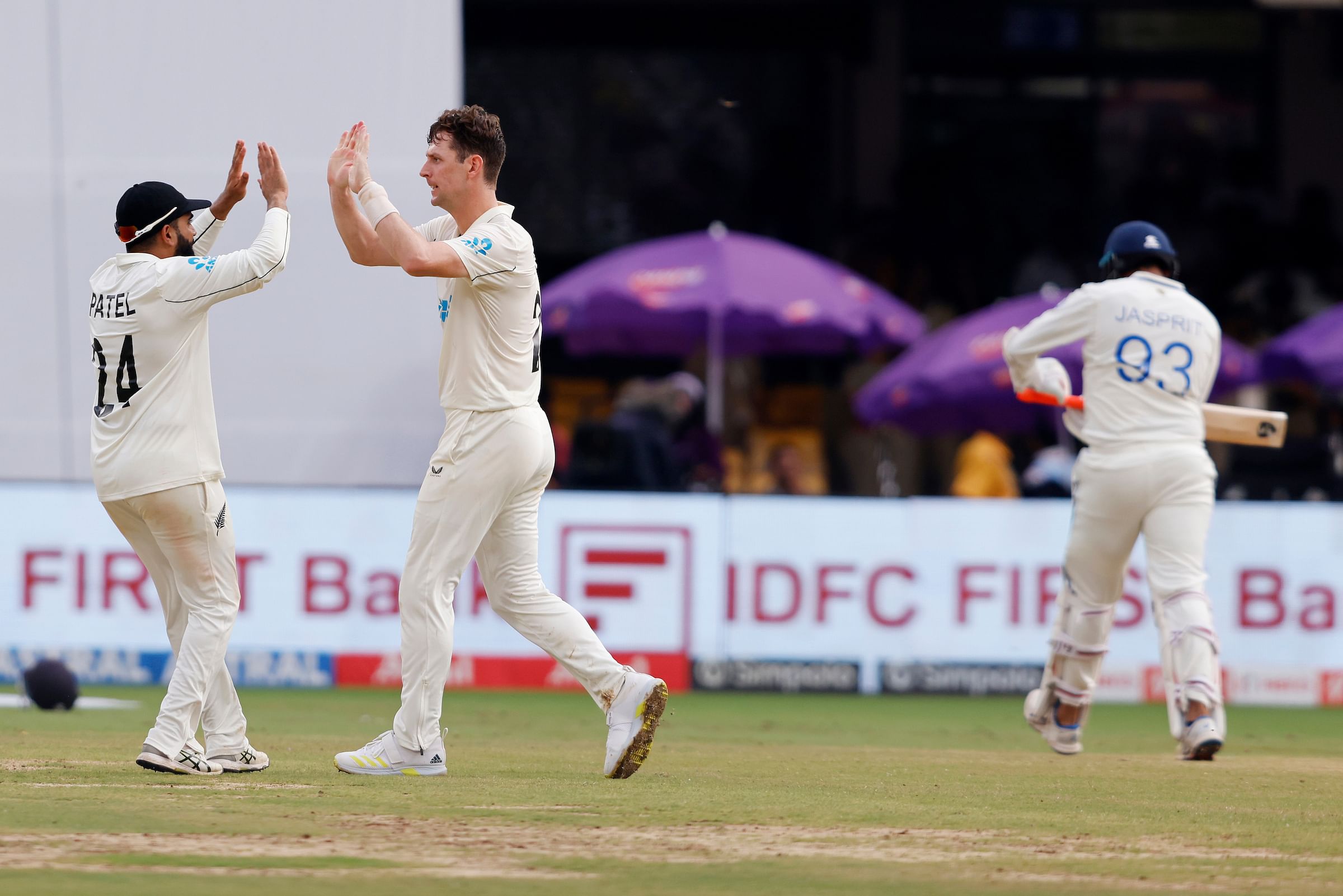 Rachin Ravindra bailed out the Kiwis with a masterful innings alongside Tim Southee. The pair added 137 runs for the eighth wicket in only 132 balls. As their partnership switched gears, India simply looked out of plans to arrest their free-flowing strokeplay. Instead, they followed the batters, allowing them to belt eight sixes between them. Their partnership stretched New Zealand’s lead from 187 to 324.
