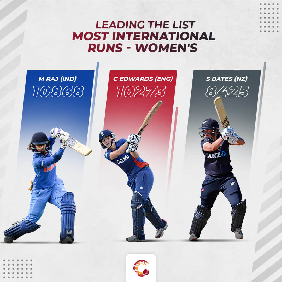 Not too long, in the third ODI against England in the same year, Raj went past Edwards' tally of 10273. In the end, at the time of her retirement, with 10,868 runs to her name in internationals, Raj is at the summit of women’s cricket. She is also the highest run-scorer in W-ODIs (7805).
