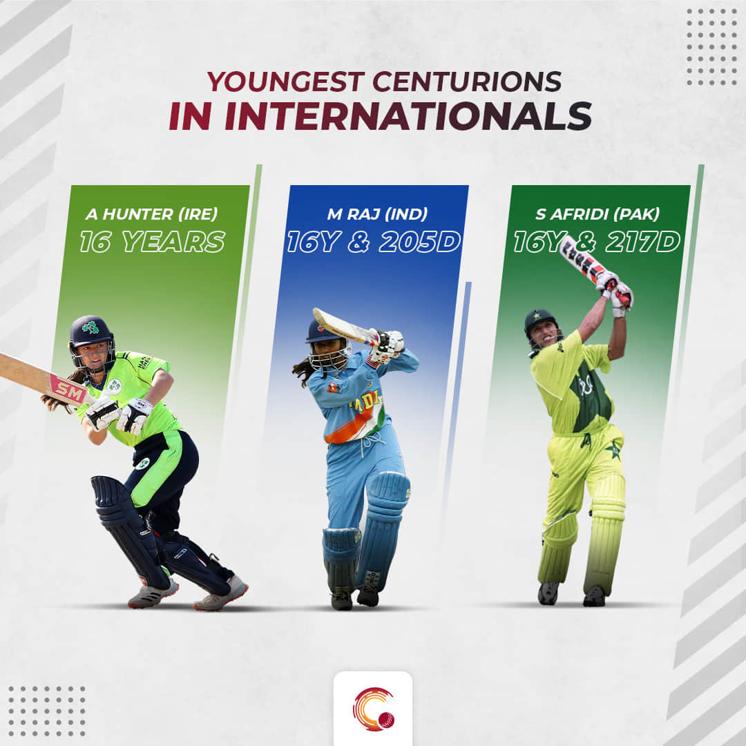 Until October 2021, Raj was the youngest centurion in all internationals, surpassing Shahid Afridi, who scored his first at 16 years and 217 days. But, Amy Hunter of Ireland, scored a ton on her 16th birthday against Zimbabwe to emulate Raj’s record.