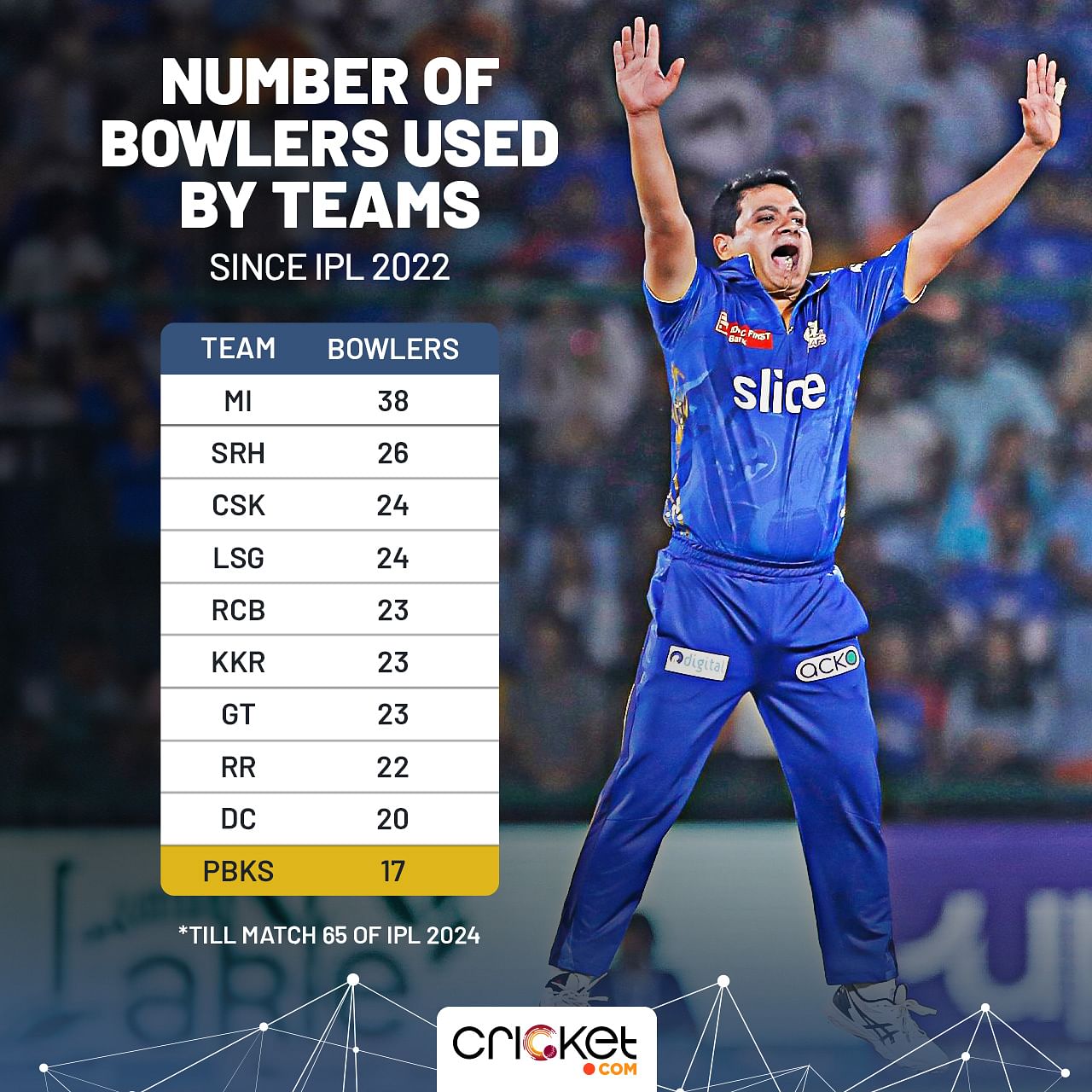 The less we talk about the churn in their bowling department the better. In these three seasons, Mumbai have ended up using 38 different bowlers. This is a staggering 12 more than any other side.