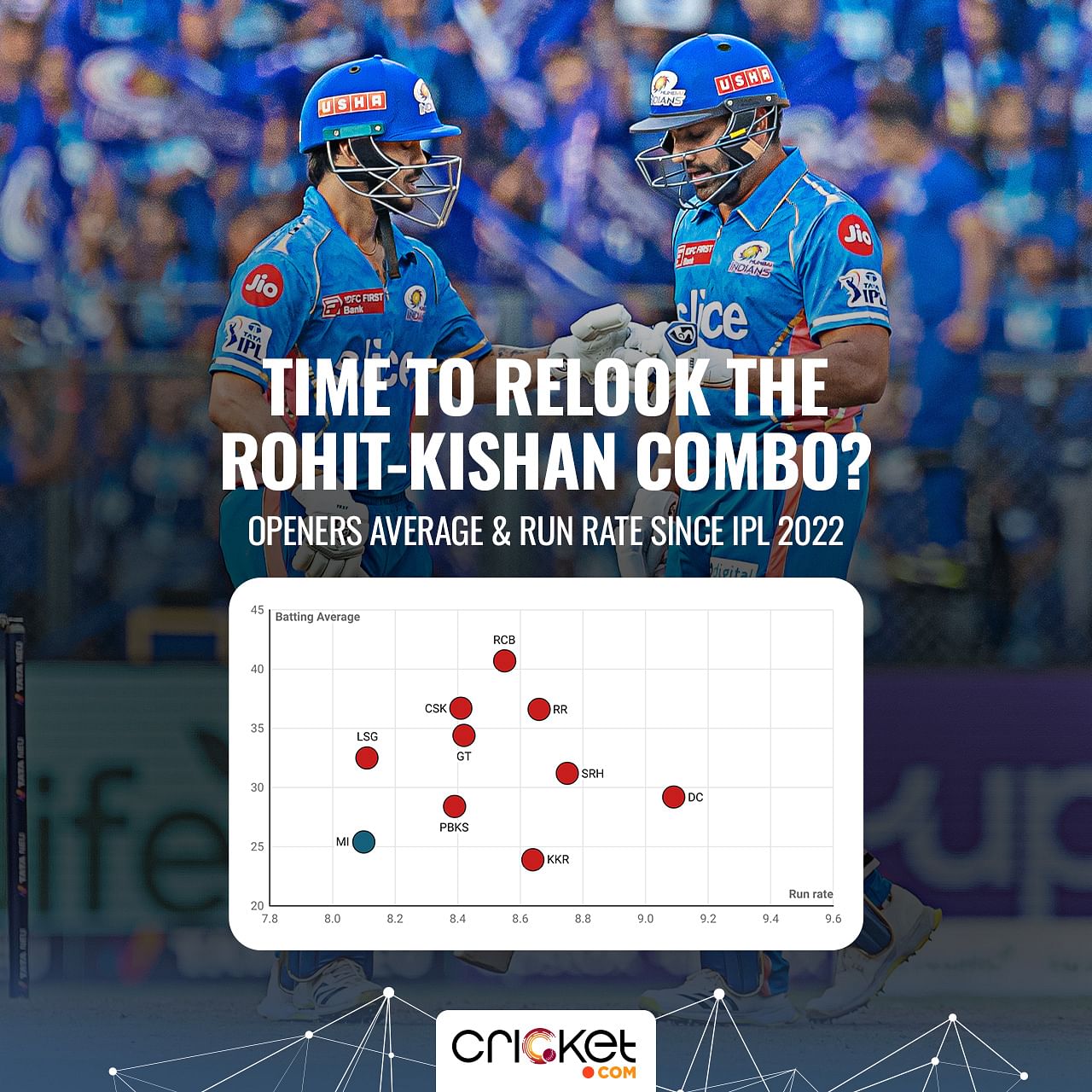 As a pair, Mumbai’s openers have been the slowest and have averaged the second-worst among all teams since 2022. In investment parlance, the Rohit-Kishan combo has come at the valuation of a market leader blue-chip firm but has operated like an outdated low-risk, low-reward public sector undertaking. Both are equally responsible for these returns since neither has been among the top-20 openers on average and top-30 on strike rate in this period.