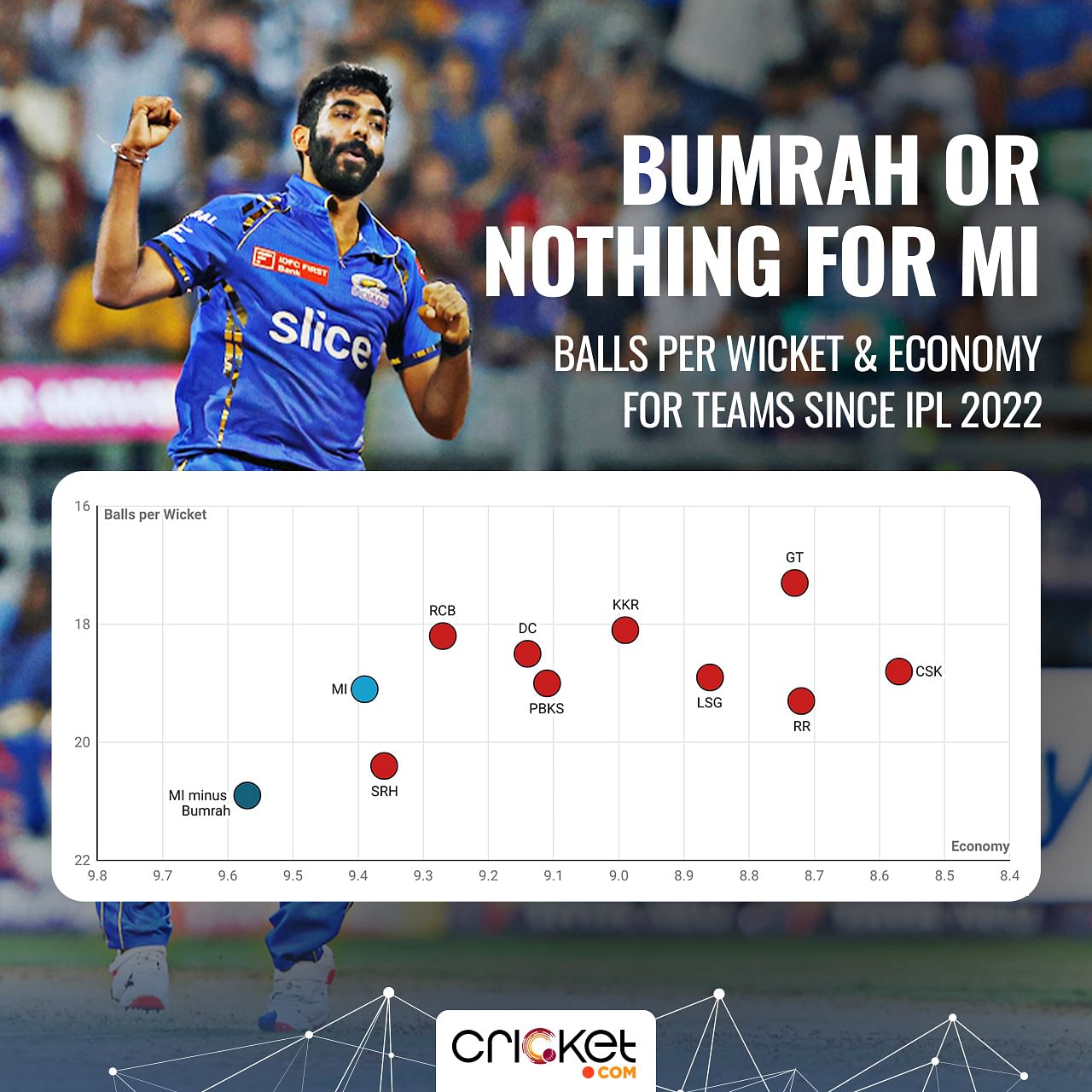 This is despite the presence of Bumrah who has pretty much been a cheat code no matter how batter-friendly the tournament has been. If we take Bumrah out of the calculations, Mumbai Indians have been the worst bowling unit by a distance. It was the exact opposite in the preceding cycle.