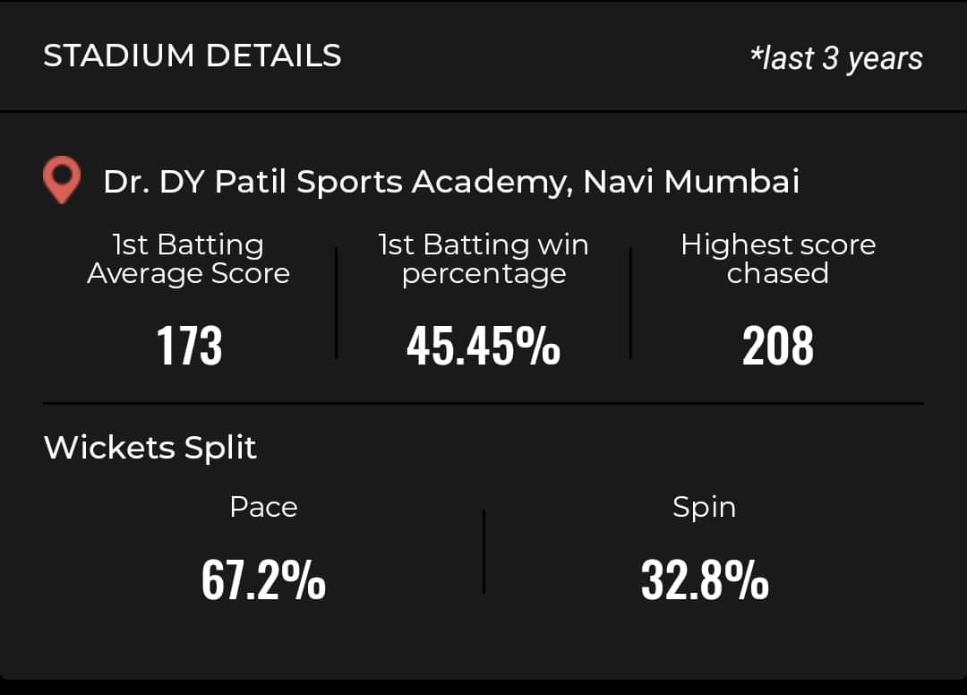 More than 67% of the wickets at the DY Patil Stadium have been picked by the fast bowlers this season, giving away 8.9 runs per over and striking every 29.8 runs, 20.1 balls apart. The spinners, on the other hand, are slowly getting into the contest given the wear and tear of the pitch, conceding at 7.6 an over and have struck every 22.2 deliveries, 28.1 runs apart.