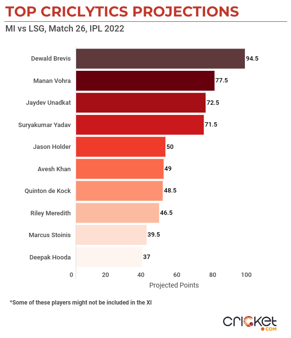 FANTASYTwo sides at different ends of the points table, Mumbai Indians and Lucknow Super Giants will lock horns at the Brabourne Stadium on Saturday. Mumbai are the only side in IPL 2022 yet to register a win, and have lost each of their five matches. Defeat on Saturday will pretty much shut the door on playoff qualification. Lucknow, meanwhile, are one of six teams on six points, and will break into the Top 2 with a win. Both sides, incidentally, will be walking into Saturday’s encounter on the back of a loss.