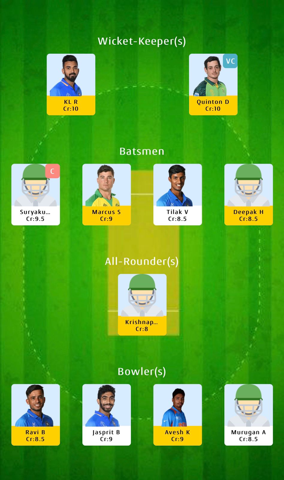 LSG: KL Rahul (c), Quinton de Kock (wk), Marcus Stoinis, Deepak Hooda, Ayush Badoni, Krunal Pandya, Jason Holder, Krishnappa Gowtham, Dushmantha Chameera, Ravi Bishnoi, Avesh Khan