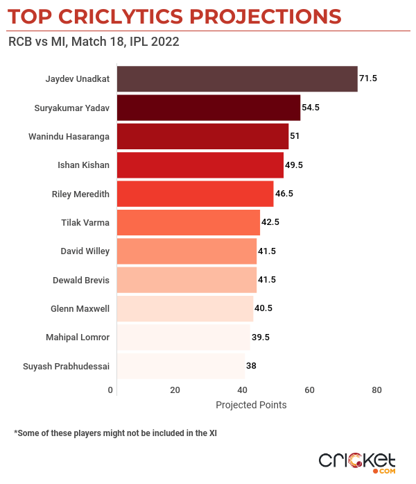 Like most venues in T20s, pacers have the maximum advantage here, having picked 63.7 % of wickets while spinners have accounted for only 36.3% of wickets. However, the sticky wicket used in the KKR-MI match clearly had a lot of help for the spinners. Hence, an eye on the pitch report will be important. But both sides have created an impact with their spinners which leans us towards maintaining a combination of pacers and tweakers in our XI.