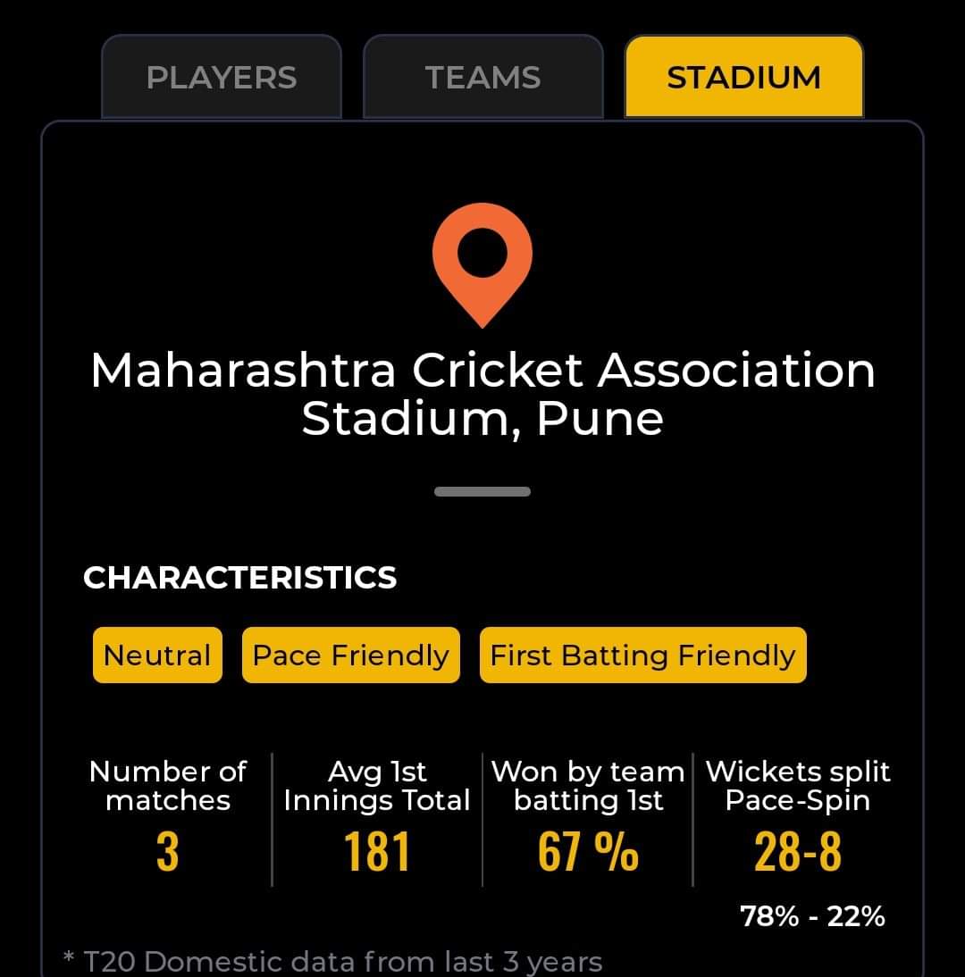 We don’t know which track will be used for Match 18. But in the recent past, Pune has been a decent batting track. Although only four T20s have been played here since 2019, the average first innings score is 181. The same for the second innings sits at 148. It is one of the few venues in India, where teams need to move beyond the popular perception and bat first in order to maximize the advantage.