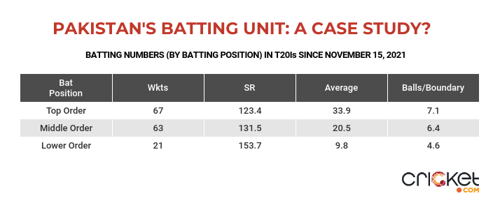 No, Pakistan have a plethora of batters in the middle-order, who when used well could prove to be key to their chances. Shadab Khan, Iftikhar Ahmed, Asif Ali and Khushdil Shah are all batting options that could very well come to the fore for Pakistan. Add Mohammed Nawaz to that, they do have a batting unit that could really put sides under pressure.