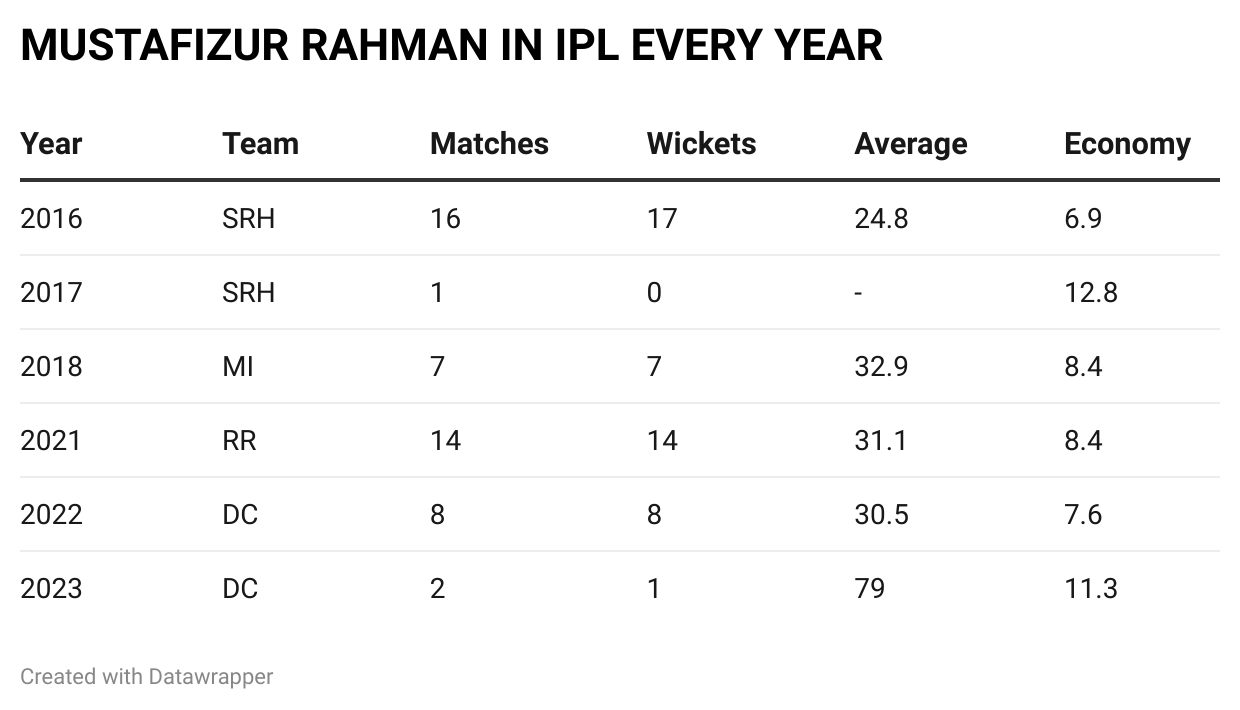 Consequently, Rahman was not much in demand at the 2024 IPL Auction. No team bid for him except CSK who fetched him at his base price of INR 2 crore.