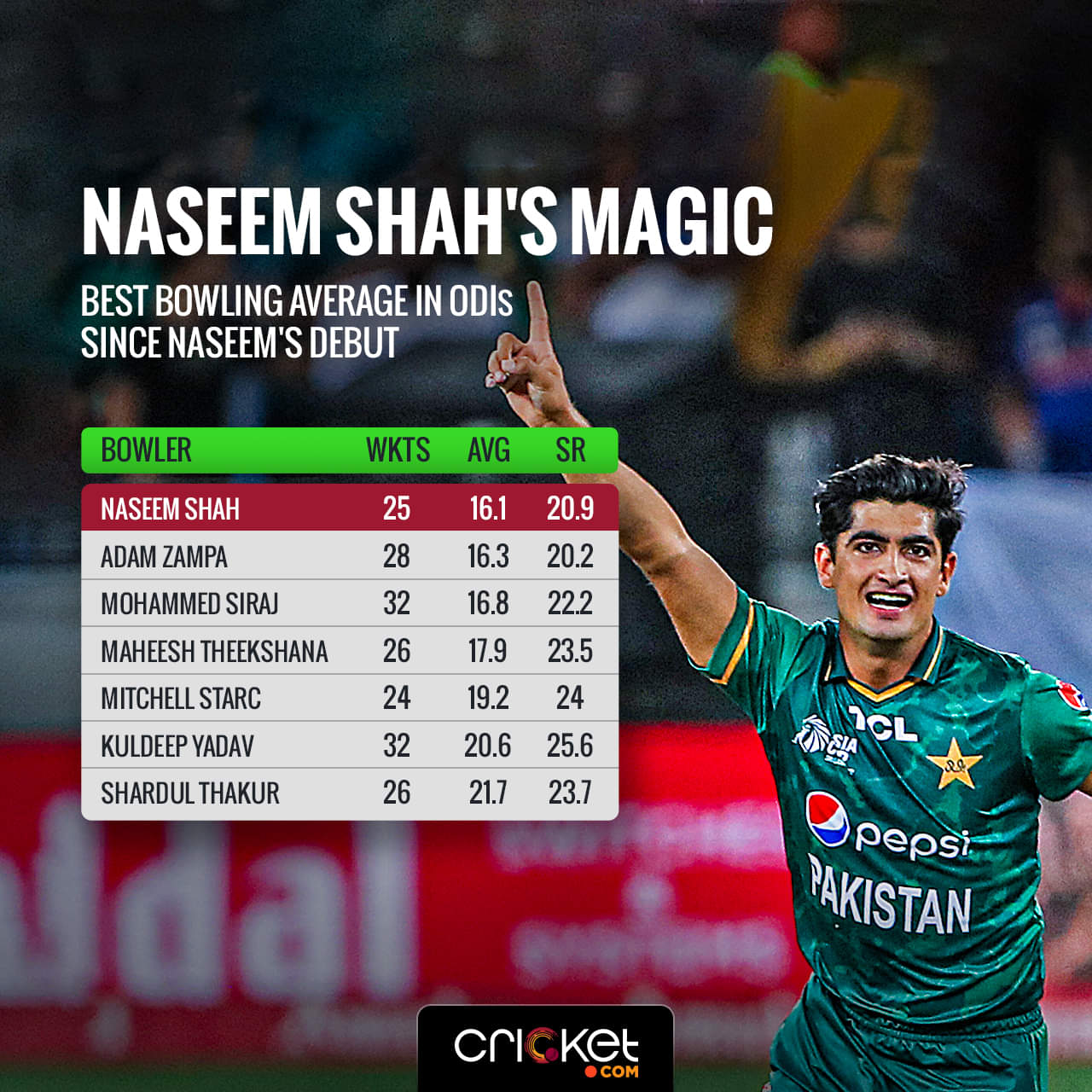 In just ten ODIs, Naseem has exactly shown why you should fear him. Since his debut, amongst all pacers, no one has a better strike-rate than him (20.9), and his average (16.1) is also the best amongst all bowlers in the time frame.