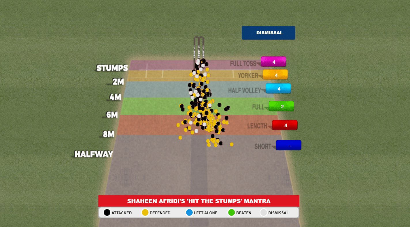 The left-arm pacer’s impact is perhaps why Pakistan’s bowling unit is considered scary. Since 2020, Shaheen has picked up 13 powerplay wickets, and one of the primary reasons why he has threatened the batters is his ability to hit the wickets.