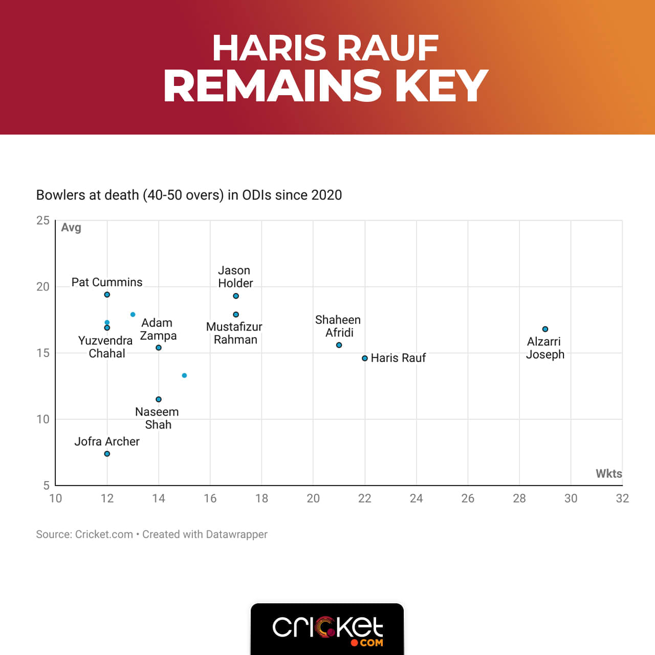 In just 24 ODIs, the speedster has picked up 44 wickets, out of which 22 wickets have come at the death, a time when bowlers usually travel the distance. At his pace, it is natural to be sometimes wayward, but Rauf is built differently.