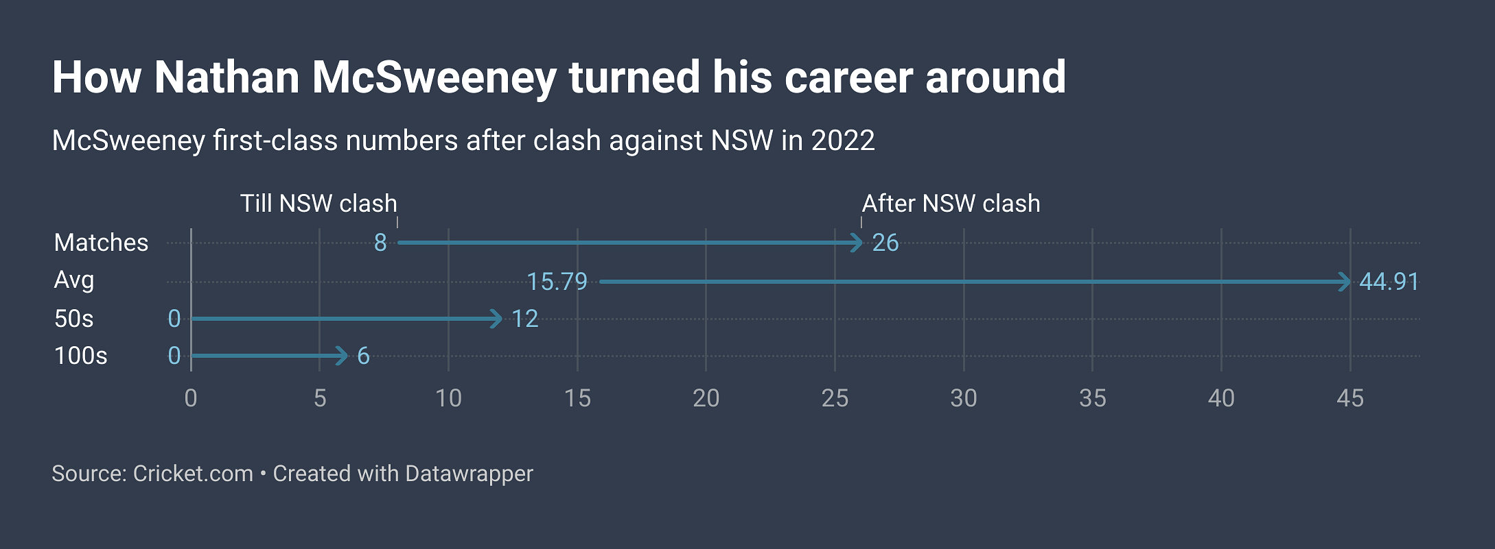 Since making his first-class debut in 2018, the then-long-haired McSweeney has risen up the ranks ever-so proficiently to walk out alongside Khawaja in the most important series of the Australian summer.