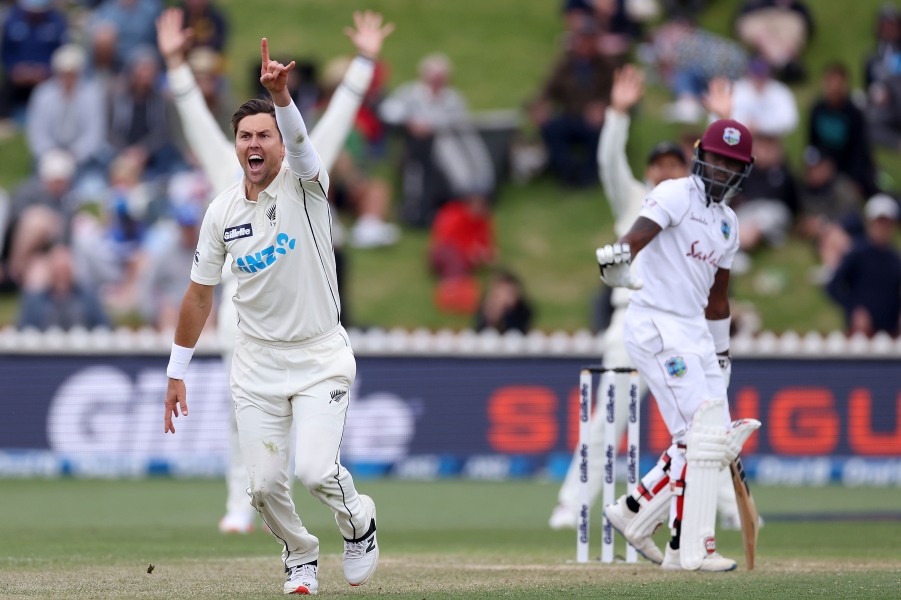 Southee wrapped up the innings after the West Indies resumed at 124-8 on Sunday, taking both wickets to finish with 5-32 as the tourists managed 131.