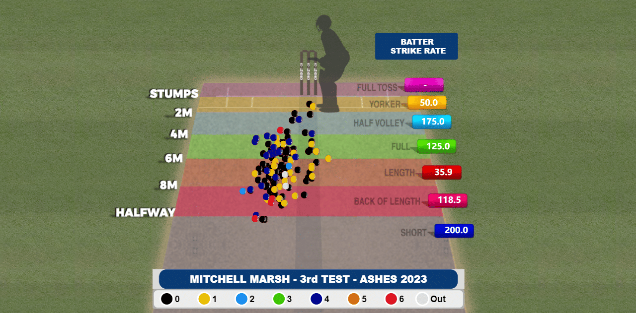 > On the contrary, the short balls are not the answer for Marsh. The low strike-rate on the good length area as compared to the other lengths at Headingley indicates the right areas to bowl to Marsh.