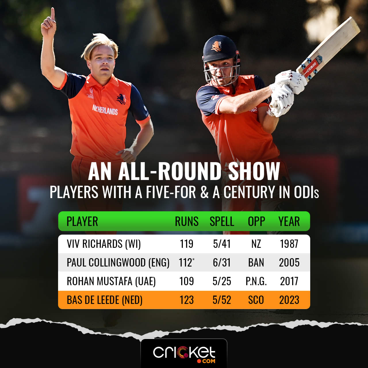 But it required a humungous effort. It required the best of Bas de Leede, with the ball and the bat, to propel the Dutch side to the next stage of the competition. In the first innings, de Leede picked up a five-wicket haul and scored a match-winning 123 off just 92 balls in the second. However, when he walked out to bat at 72/2, it was far from what the Dutch side would have anticipated.