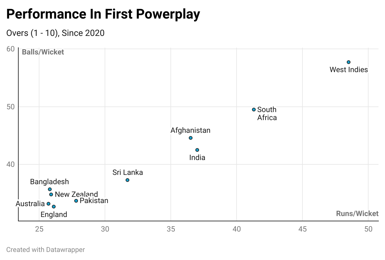 In the first powerplay, Pakistan’s pacers have been as good as it gets. In terms of taking wickets, they are right up there with Australia and England. This, despite playing on relatively flatter and more unfriendly surfaces than the other two.