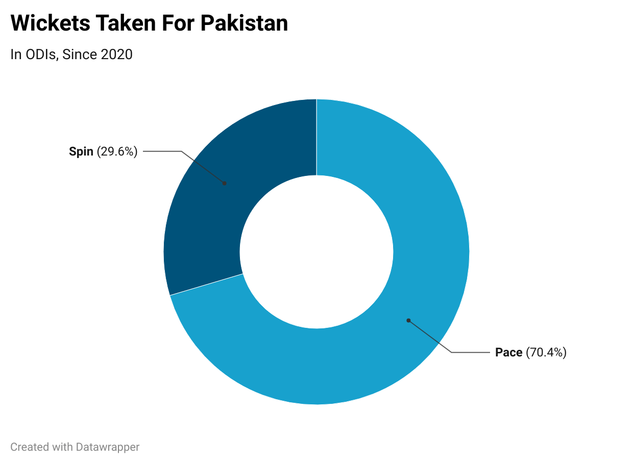 It doesn’t get any better when you extend it to the last few years. In the 32 ODIs they have played since 2020, spinners have not been just as penetrative for Pakistan. Both, pacers and spinners have conceded at 5.4 RPO. However, this is where the difference lies - their spinners have taken over 50% more deliveries to take a wicket.
