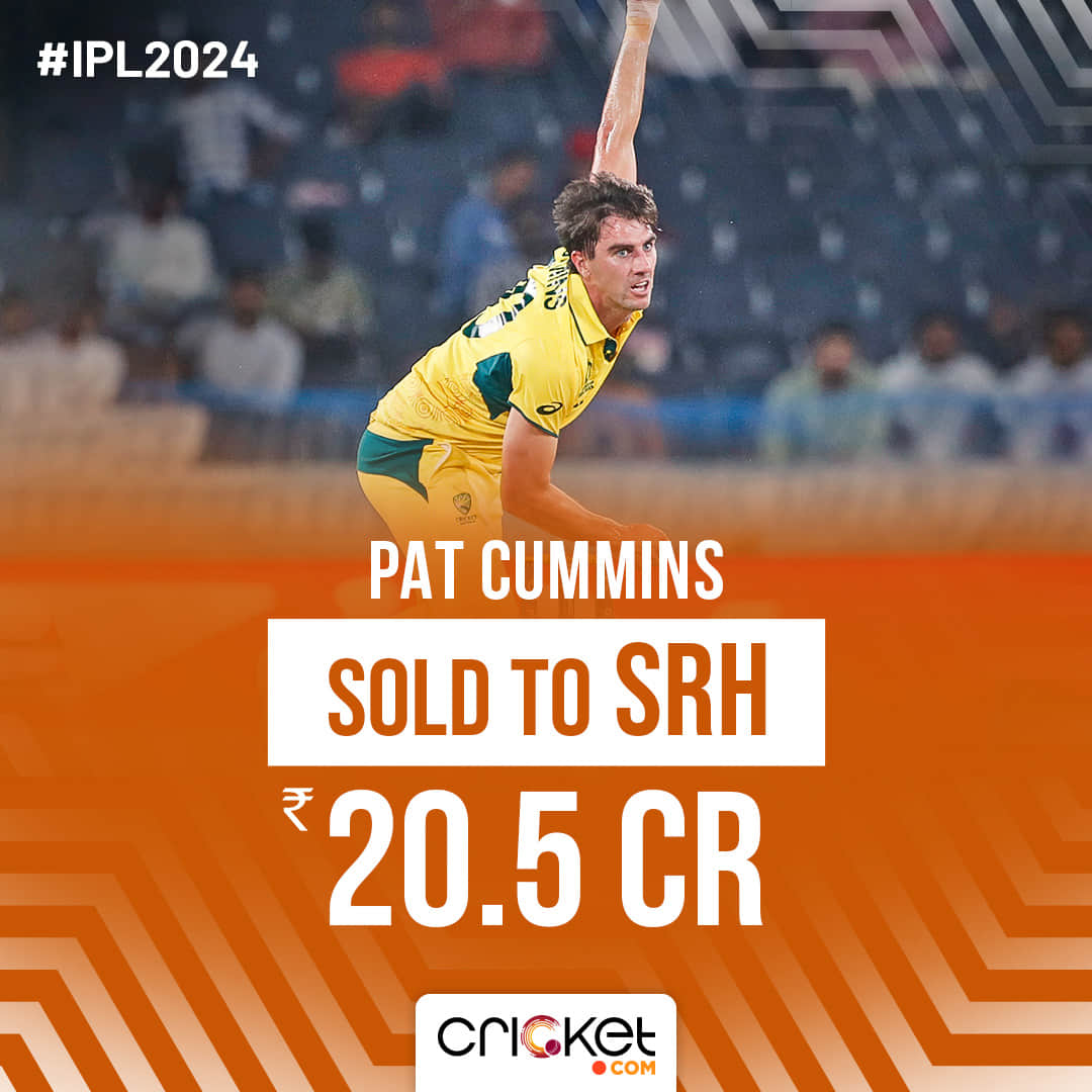 Cummins, who has previously turned up for the Kolkata Knight Riders (KKR) had set a base price of INR 2 crore with Mumbai Indians (MI) and Chennai Super Kings (CSK) initially involved in a bidding war with Royal Challengers Bangalore (RCB) joining the race at INR 5 crore, and Sunrisers Hyderabad (SRH) coming in at INR 8.4 crore.