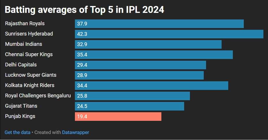 34 matches into IPL 2024, no side’s Top Five has been as poor as that of the Punjab Kings, whose top five batters have combined to score 661 runs at an eye-watering average of 19.4. The Kings, this season, have come close to winning so many games but that’s all down to their lower-order, which, led by Ashutosh Sharma and Shashank Singh, has done all the heavy lifting.