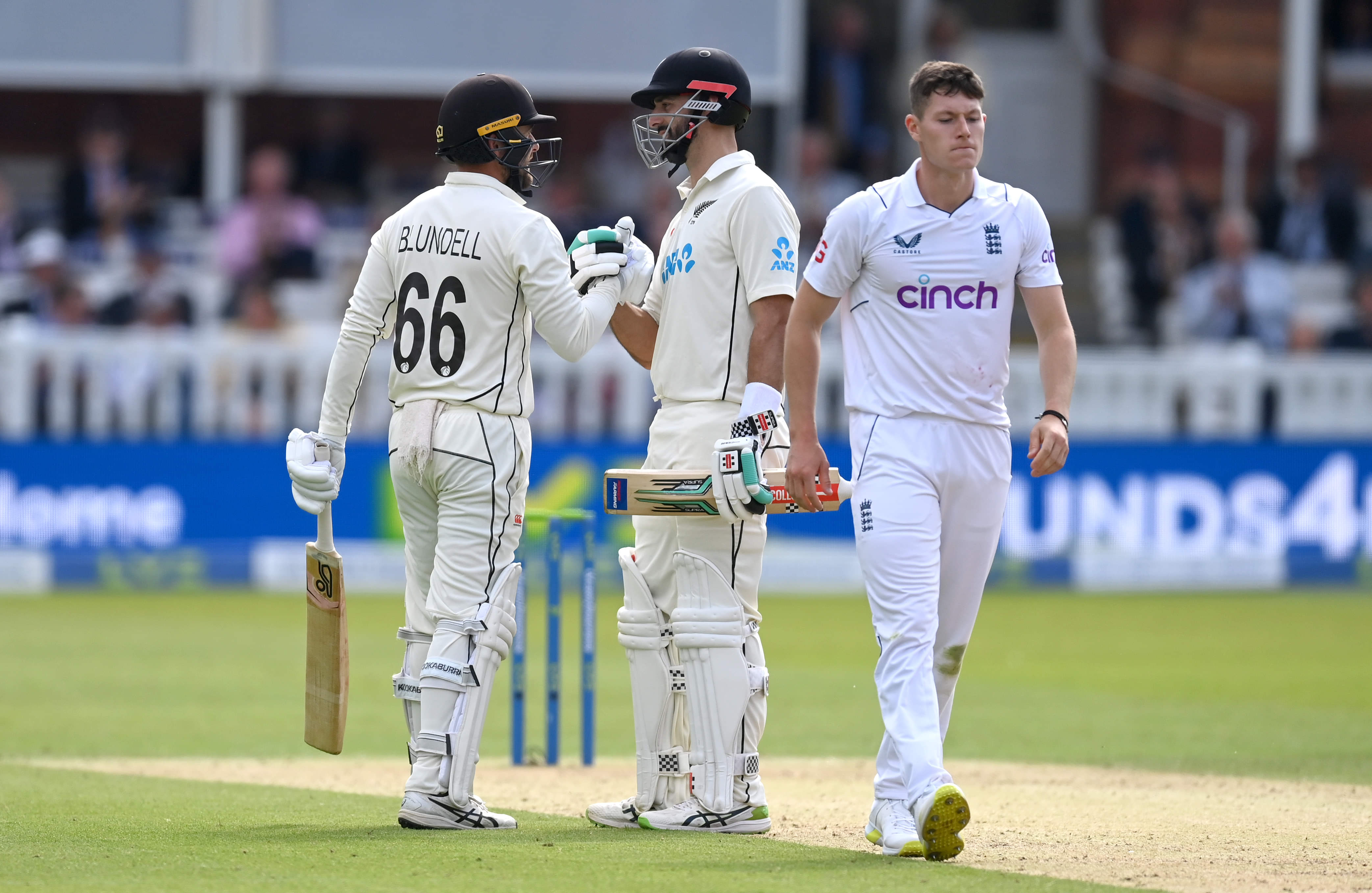Walking right into the line of fire, Mitchell, playing his first ever Test in England, first diffused the situation and then took the game to England by punishing anything that was remotely bad. By stumps Tom Blundell caught up, but it was the bat of Mitchell that kick-started the Kiwi renaissance on the day; the hosts were in control up until the 30th over, but Mitchell collecting 22 off 13 balls in a three-over phase helped them punch back and keep their opponents honest.