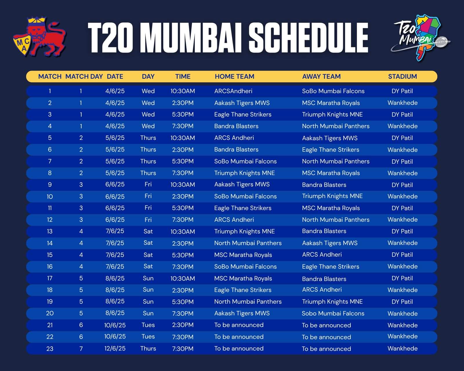 The T20 Mumbai 2025, kicking off on June 4, isn't just another domestic tournament added to the Indian T20 calendar. With stars like Suryakumar Yadav, Shreyas Iyer, and Shardul Thakur leading the charge and young guns like Musheer Khan and Angkrish Raghuvanshi looking to make their mark, the league promises a high-voltage showcase of international pedigree, IPL flair, and Mumbai’s finest emerging talent.