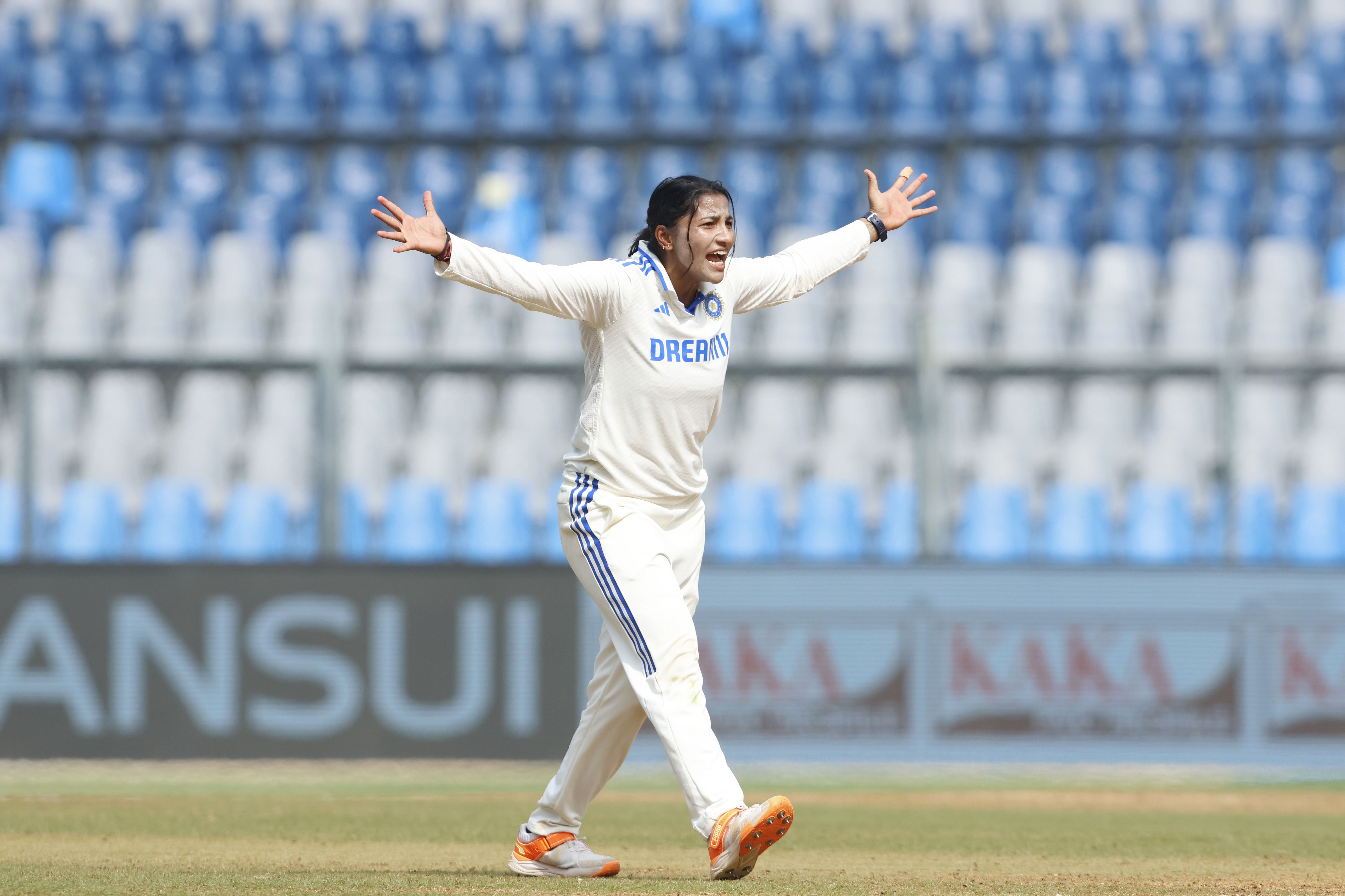 In her first over of the day, she cleaned up Ellyse Perry with an absolute peach of a delivery jagged back in sharply to evade her bat and obliterate the stumps. Then she bounced out Beth Mooney in the last over before lunch. Later, she also sent back Annabel Sutherland and Ashleigh Gardner, breaking the back of Australian batting.