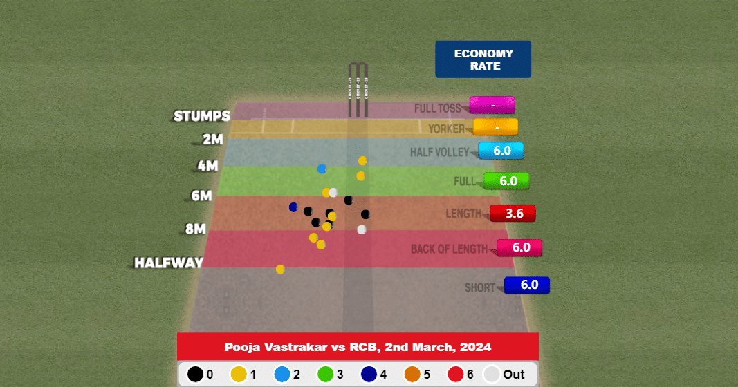 The next time Vastrakar bowled to her, the left-handed batter chopped it onto her stumps as Vastrakar angled the ball away from over the wicket but bowled it on a length, and the line was within the stumps. Considering the situation, it was a smart ball (RCB struggling at 71/4 after 12 overs), and her execution was top-notch.