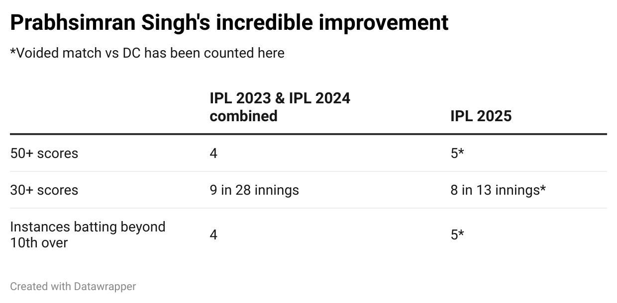 The enforced IPL 2025 break could not have come at a worse time for Prabhsimran, who was batting as well as he has in his entire career, peeling off four consecutive fifties.