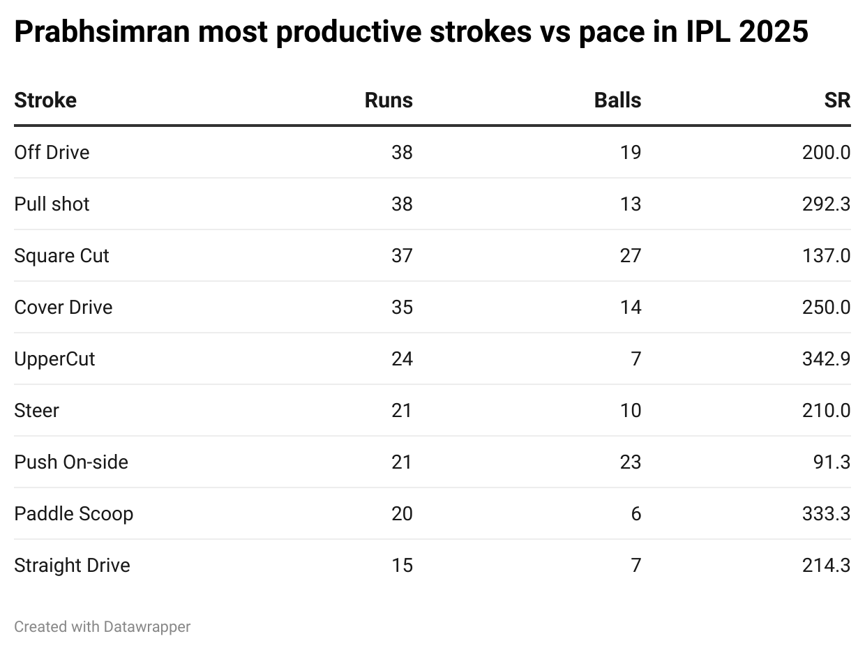 So far in IPL 2025, Prabhsimran has scored 24 runs via the uppercut — that’s more than any other batter in the league, including Suryakumar Yadav.