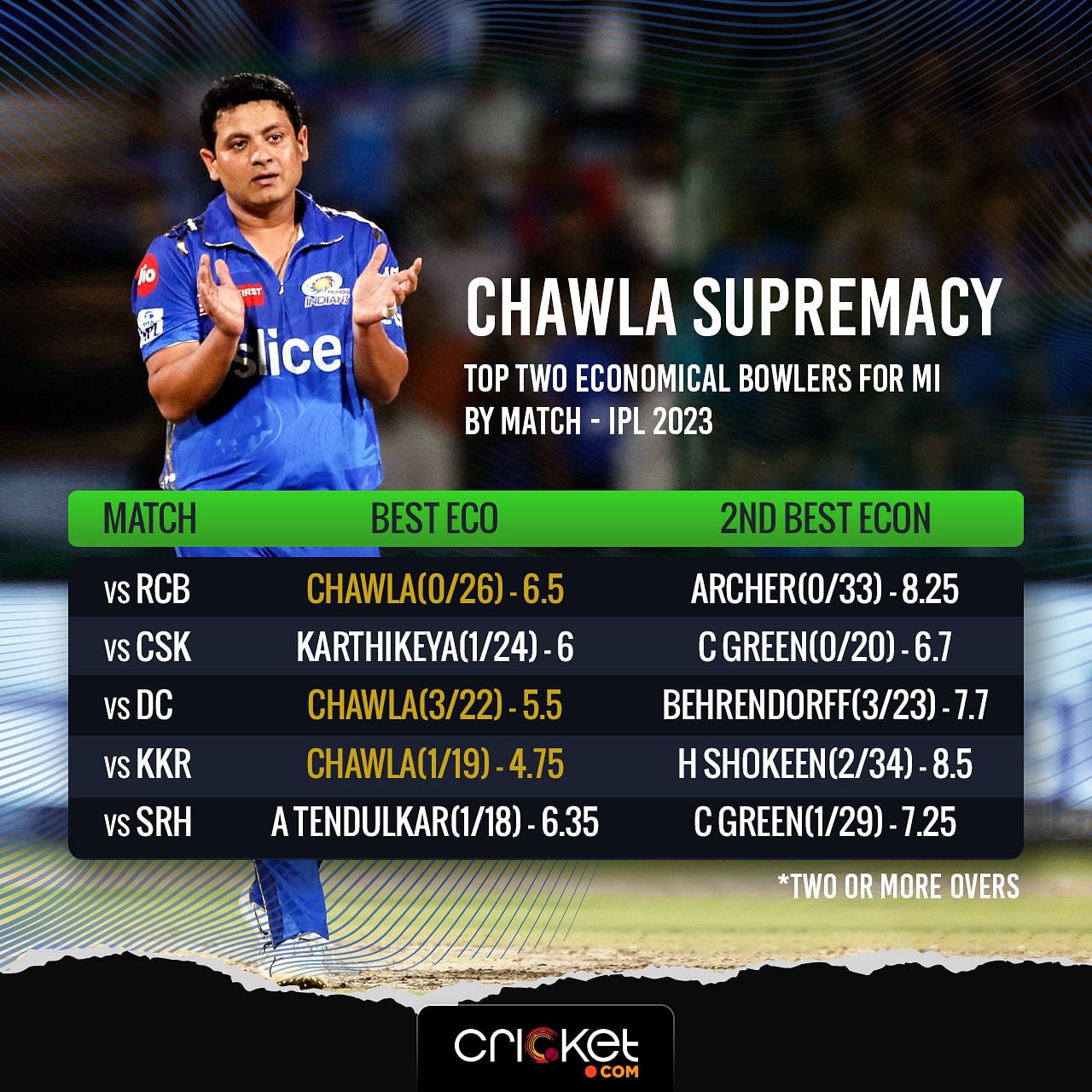 Can Piyush Chawla bowl in all phases? Yes, he can. Can he bowl to left-handers and right-handers? Again, the answer is yes, he can. This season, Chawla has been Mumbai's go-to bowler under challenging situations.