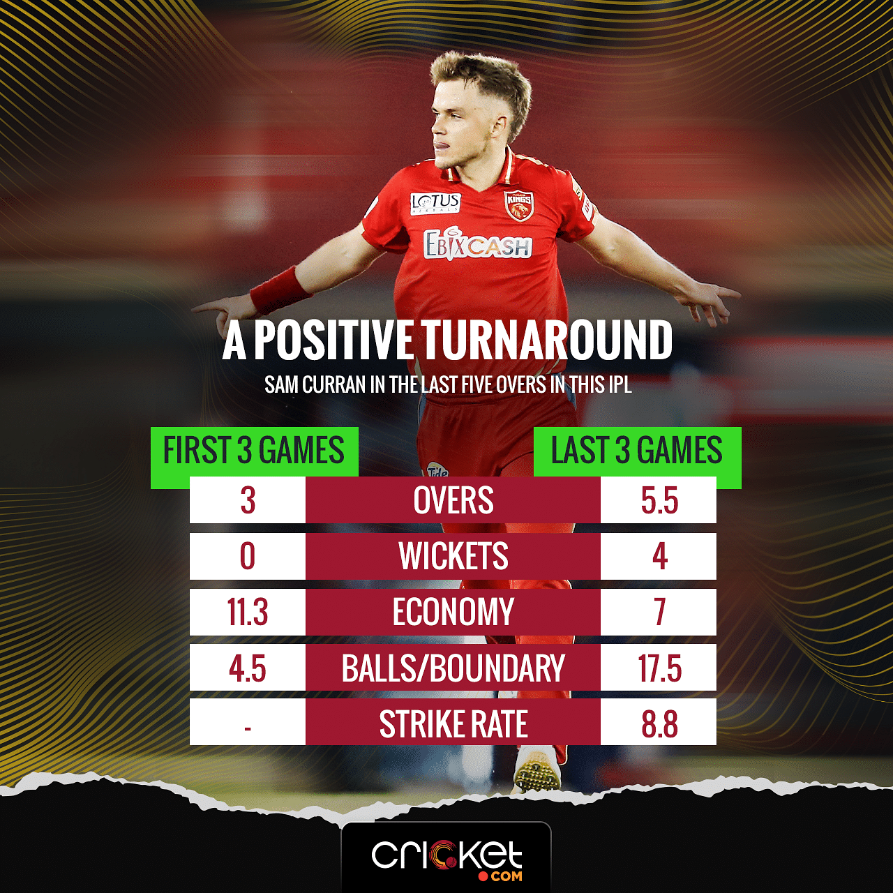 There has been a massive turnaround in the last three games. Curran has picked up four wickets, and all have come at the fag end of the innings. The most impressive aspect is that his economy has come down to seven from 11.3.