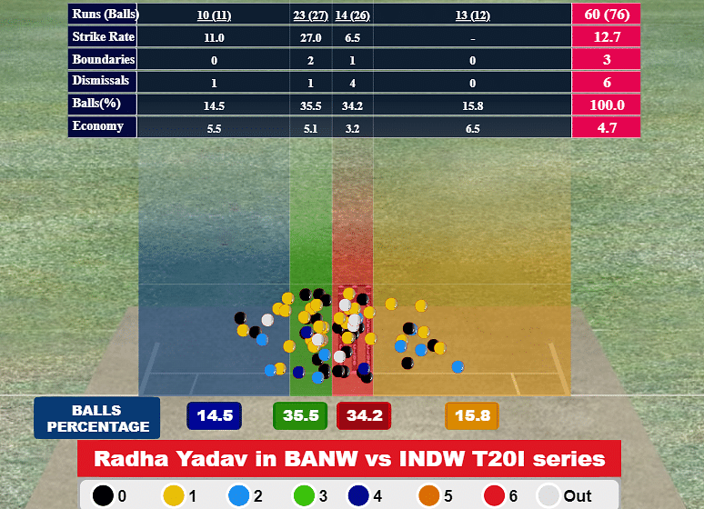 Her methods are working as they used to. However, this version of Radha seems much smarter and hungrier, as her lines have proved in this series, where she’s targeting the stumps of the Bangladeshi batters a lot more. She understands the kind of help available to her and makes her plans accordingly.