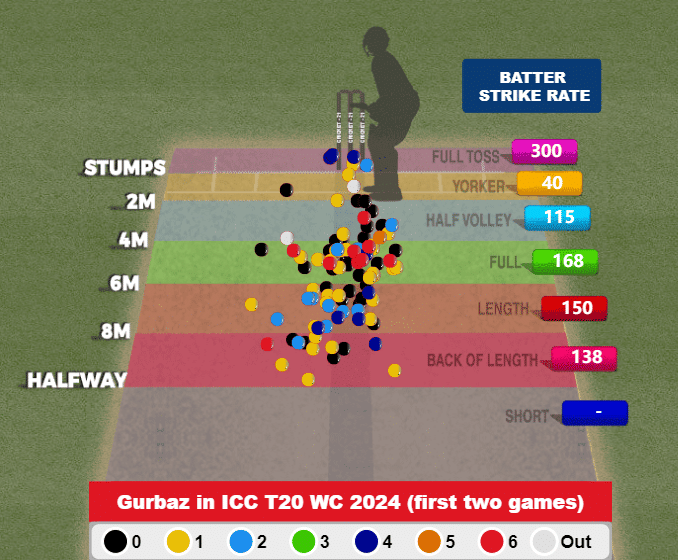 For instance, Gurbaz is a great hitter of slower balls. In the two games he has played in this World Cup, he has hit 47 runs off the 24 slower deliveries he faced. On slow tracks of the West Indies, where cutters and a variety of slower deliveries are go-to options for bowlers, Gurbaz becomes a lethal batter.