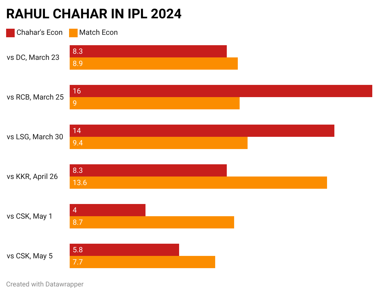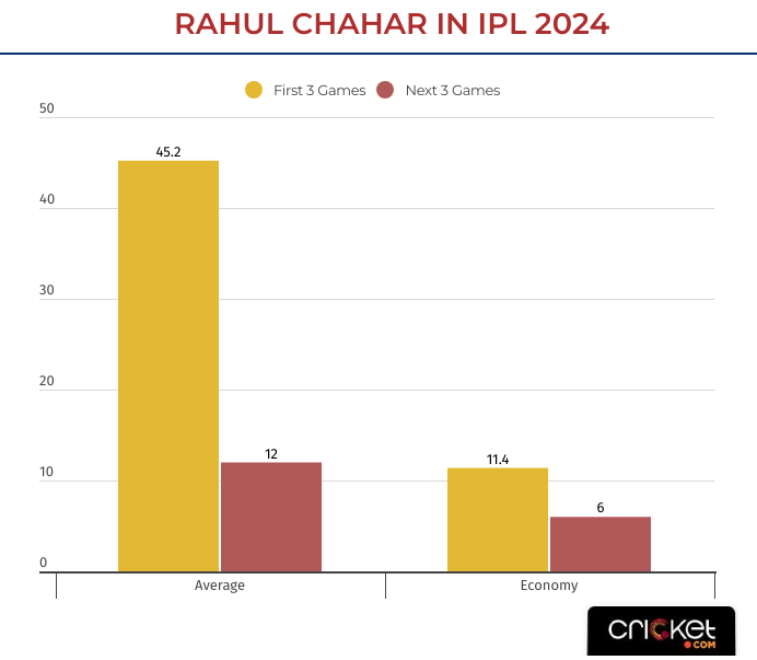 Chahar had a false start to the season, picking only two wickets in the first three matches. He had also taken the brunt of a high-scoring first half of the season, going at 11.4 runs per over.