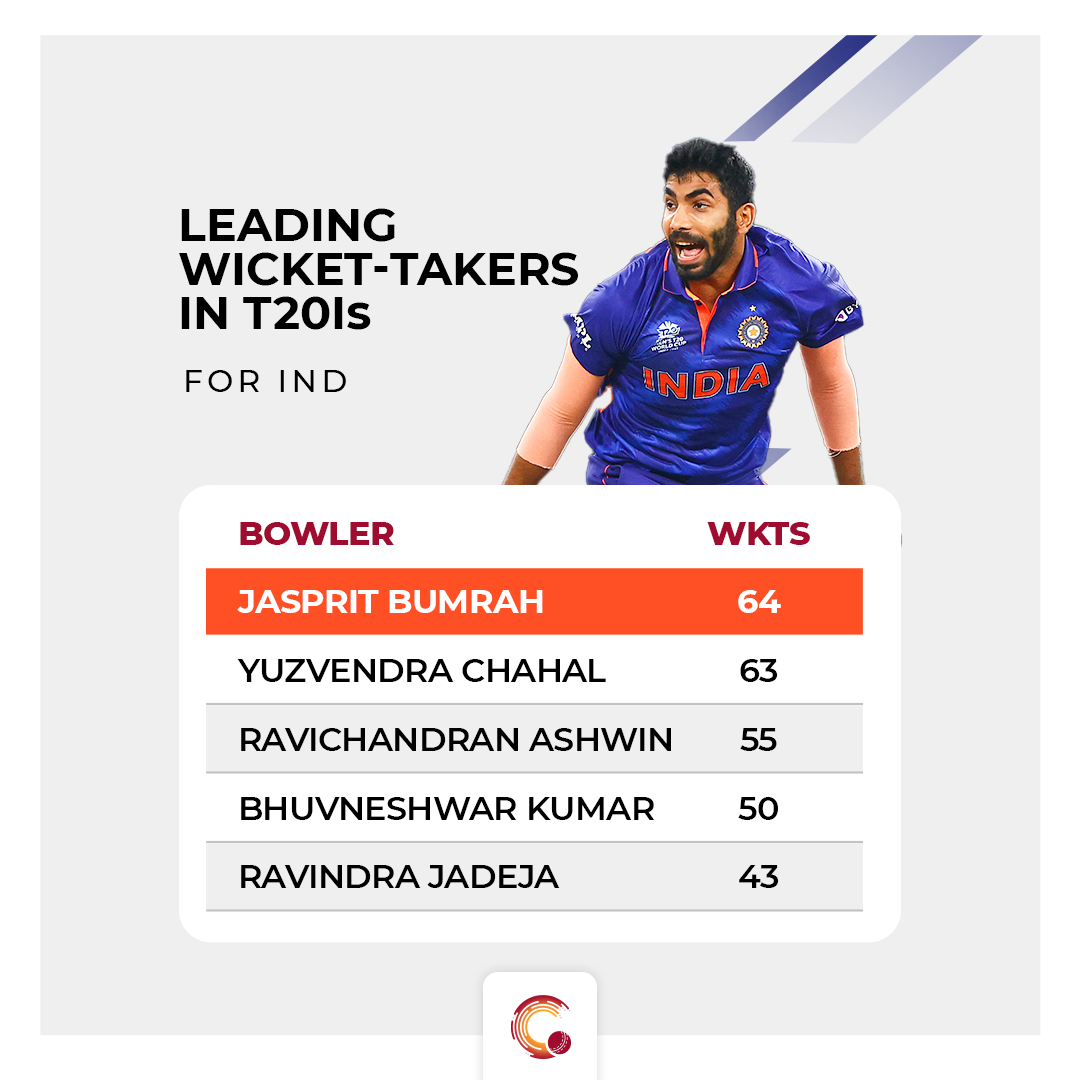 One of the most lethal bowlers in the shortest format of the game, Jasprit Bumrah became the leading bowler for the nation in T20Is with 64 wickets. The right-arm pacer achieved this feat by dismissing Mark Watt on the fourth ball of the 18th over with a well-directed yorker at the leg stump to finish with figures of 2/10. Yuzvendra Chahal is second on the list with 63 wickets, followed by Ravichandra Ashwin with 55 scalps.