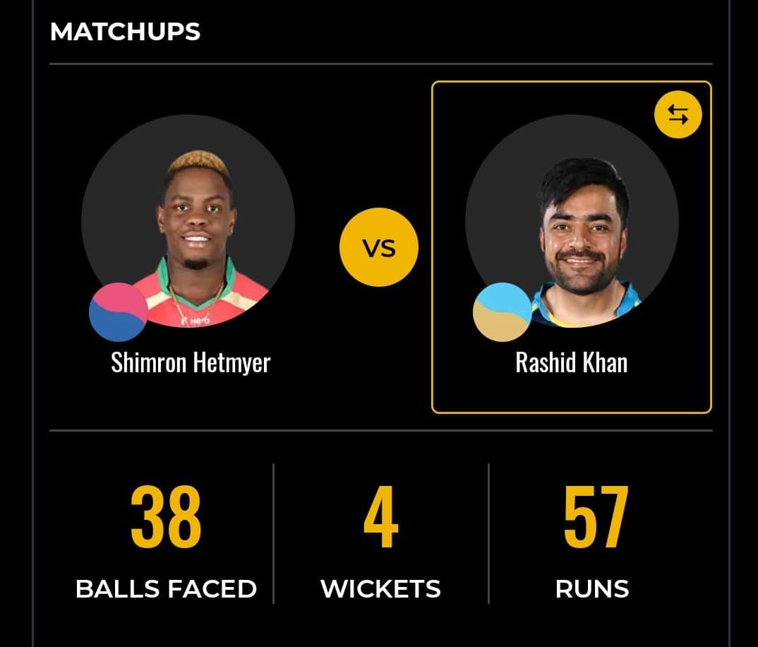 Shimron Hetmyer has been one of the most impactful batters in the tournament. Despite batting at number five, the southpaw has made crucial contributions in every game, ultimately scoring 168 runs at an average of 84. He has been dismissed only twice in four matches. However, Rashid Khan, the lynchpin of Gujarat’s bowling has an edge over the Caribbean player. Both players are must-picks in your XI and their contest will be the one to watch out for.
