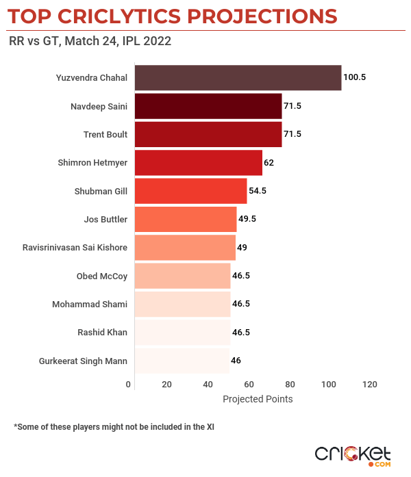 Given the voids in Gujarat’s batting and suitability for spinners at the venue, Chahal is a safe bet to lead your fantasy fortunes