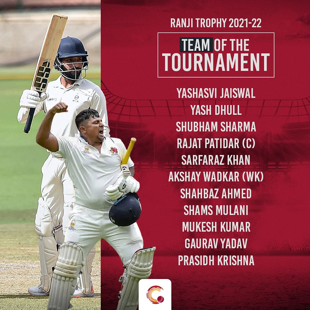 There he is, the player of the tournament! Just look at those numbers and you would know how dominating Sarfaraz has been in red-ball cricket. Not just this year, the right-hander even amassed more than 900 runs in the 2019-20 edition and became only the third batter after Ajay Sharma and Wasim Jaffer to score 900-plus runs twice in a Ranji season. Coming into the quarterfinal, in the league stage before IPL 2022, he had scores of 275, 63, 48 and 165. In the quarterfinal against Uttarakhand, Sarfaraz hit 153* before crafting another century (134) in the final. Interestingly, this was the first time he failed to convert his century into a 150-plus score in first-class cricket. Such has been his dominance that Sarfaraz ended 324 runs ahead of the second-highest run-scorer and is likely to be part of the Indian squad for the two-match Test series against Bangladesh in November.