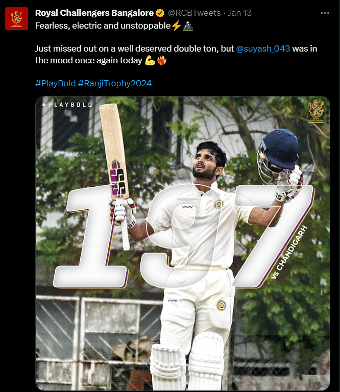 Opening the innings, the RCB all-rounder was the star for Goa against Chandigarh, scoring 197, with 18 fours and one six. The right-hander batted for 364 deliveries and formed partnerships with five other batters before eventually getting out three shy of another double-century. Deepraj Gaonkar was the only other Goan batter to score a century in the fixture.