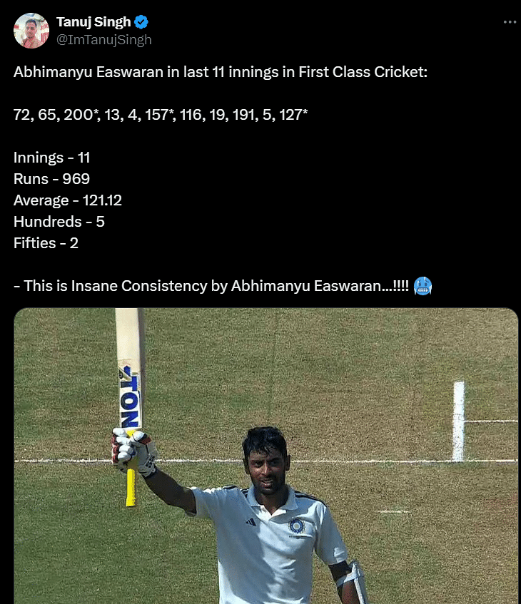 How can you ignore Abhimanyu in the form he is in? Despite being ignored multiple times in the past, the 29-year-old Bengal batter started yet another Ranji season with a century. In just this calendar year, Easwaran has amassed 1026 runs in 16 innings, averaging 78.92. Will BCCI continue to ignore him?