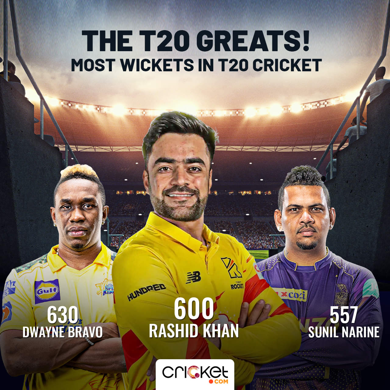 Astonishingly, Rashid achieved this in just 438 appearances while maintaining an economy of 6.5 and an average of 18.3, far lower than Bravo’s numbers. The leg spinner made his T20 debut in 2015 against Zimbabwe in Bulawayo but, over the last nine years, has played cricket for nearly 20 franchises.