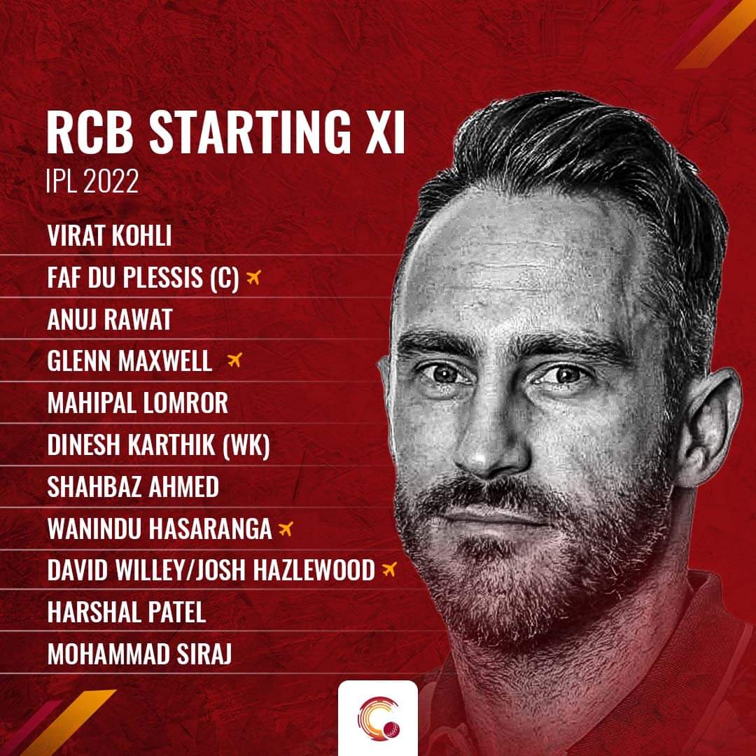 • Maxwell and Hasaranga are indispensable to the side. Hazlewood, Willey and Behrendorff can be swapped with each other but one of them should play in an ideal setup. du Plessis is the skipper. Thus, the scope to play the left-hander Sherfane Rutherford or an attacking opener in Finn Allen reduces considerably. The aforementioned batting concerns suggest they might need their services.