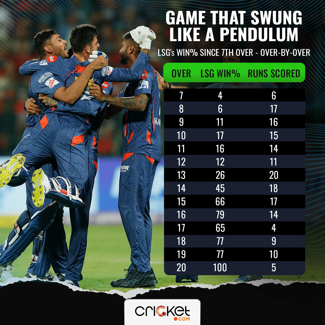 From RCB, LSG and a tie, the game swung like a pendulum. Only the second match in IPL history, where a team won off the last ball with one wicket in hand.