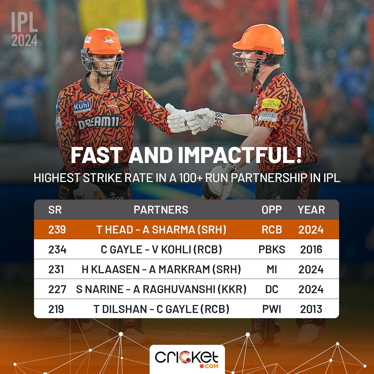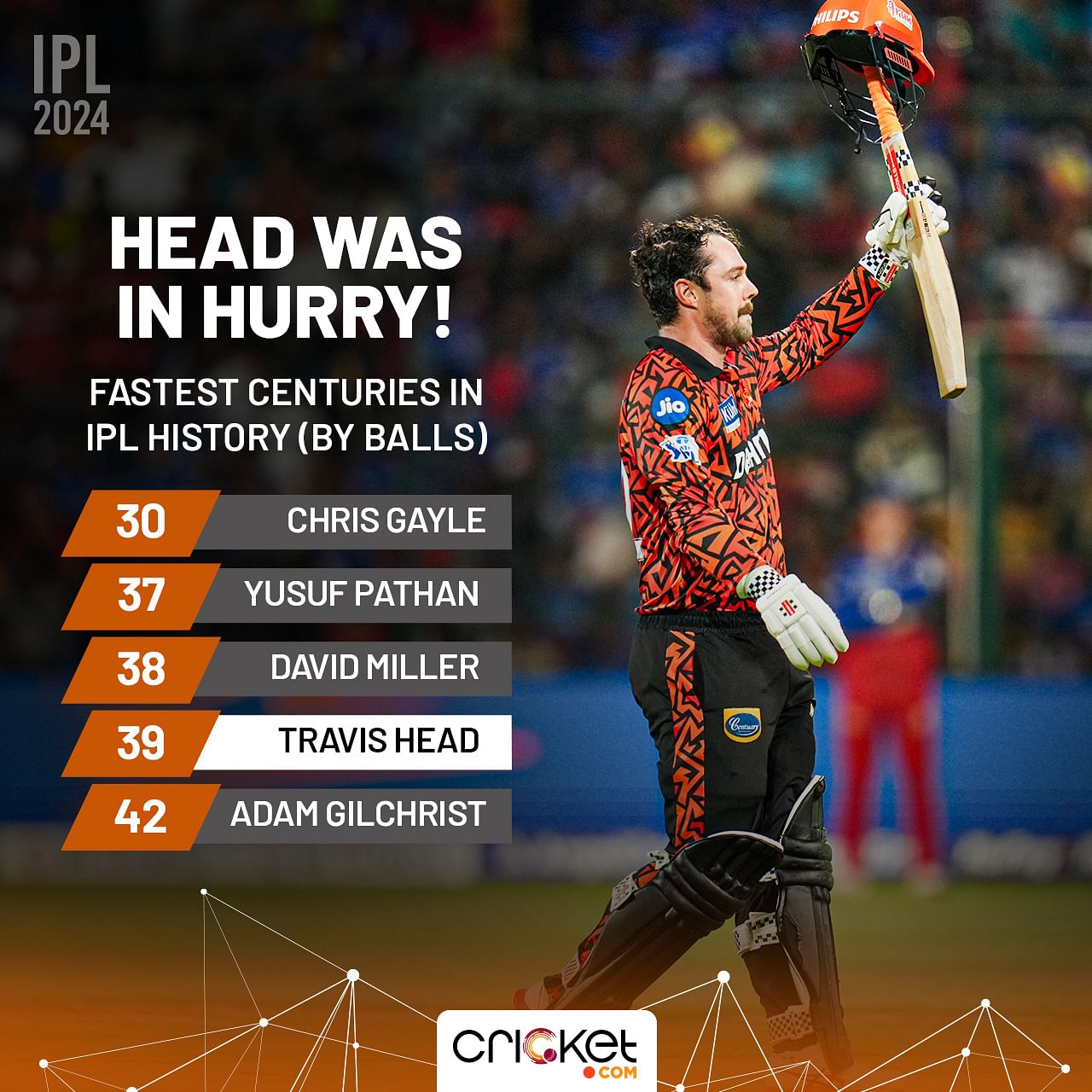 The matters began with Travis Head hammering the RCB bowlers as he set the tone of the game by completing his fifty within the first six overs. His acceleration continued as he scored his ton in 39 balls, which is the fourth fastest century in IPL.